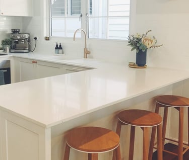 Virtuvių interjero dizaine dažnai pasitaiko ne tik "I" formos tiesių stalviršių, bet ir lenktų "L" arba "U". Priklausomai nuo to, kokios virtuvės stalviršį norite atnaujinti, paruošime jį pagal jūsų išmatavimus ir poreikius. Tiesioje linijoje sumontuotiems virtuvės baldams galime pasiūlyti ilgesnius nei 3,5 metro stalviršius. Tačiau ką svarbiausia žinoti, kad ir kokios formos bei išmatavimų būtų jums reikalingas stalviršis – pagaminsime jį vientisą ir natūralų be jokių matomų sujungimo siūlių.
